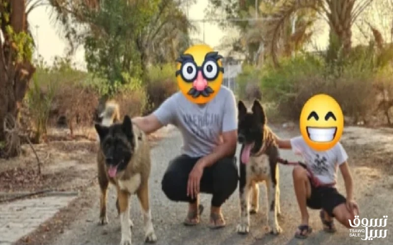 كلبين أمريكان أكيتا الانثي سنتين الذكر خمس سنوات الكلاب وفيه و هادية البيع بسبب تغيير المكان 290 دينار