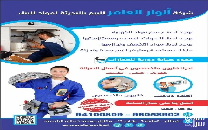 #أنوار_العامر: لأن مشاريعك تستحق الأفضل- يوجد لدينا جميع مواد الكهرباء- يوجد لدينا الأدوات الصحية ومستلزماتها- يوجد لدينا مواد التكييف ولوازمها- عقود صيانةالعنوان : خيطان قطعة 9 شارع 29 مقابل جمعية خيطان الرئيسية#كهرباء #صحي #مواد_بناء
