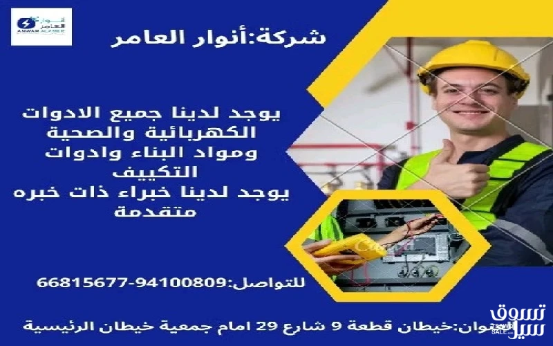 #أنوار_العامر: لأن مشاريعك تستحق الأفضل- يوجد لدينا جميع مواد الكهرباء- يوجد لدينا الأدوات الصحية ومستلزماتها- يوجد لدينا مواد التكييف ولوازمها- عقود صيانةالعنوان : خيطان قطعة 9 شارع 29 مقابل جمعية خيطان الرئيسية#كهرباء #صحي #مواد_بناء