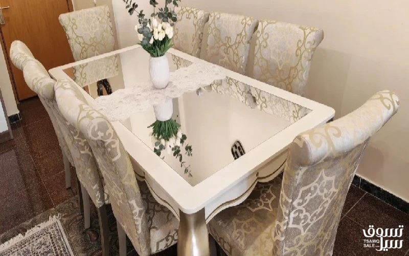 طاولة طعام سم 220x110 8 كرسي خشب زان حالة ممتازة من دانوب Dining table 220x110 cm 8 chairs Real wood Excellent condition From danoub