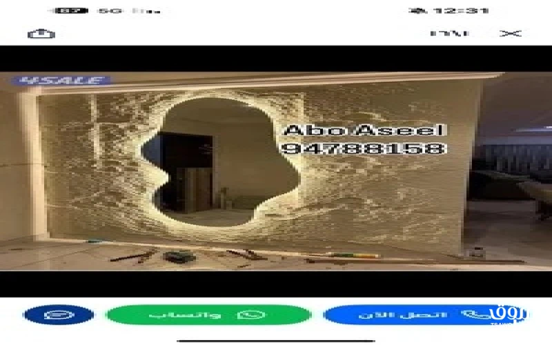 الوصف جميع أعمال الديكورات والأصباغ بديل الحجر وبديل الخشب وبديل الرخام والشيبورد والصفائح الطينيه ورق جدران وباركيه أعمال الكهرباء والصحي والسيراميك الالياف الضوئية (النجوم ) أعمال الجام والشاور بوكس تفصال مغاسل رخام تفصال ابواب وكبدات وكنفات وعزل ابواب وطوف صبغ مائي جوتن صبغ ناري جميع أعمال الديكورات ال