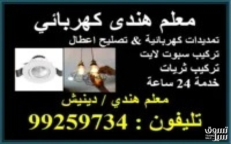 فني كهربائي معلم هندي جميع أعمال الكهرباء. تكسير سكوت لايت وجميع الأعمال في جميع مناطق الكويت
