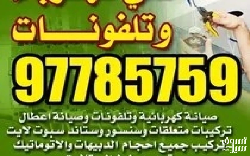 الوصف تركيب وصيانه كهربائيه وتلفونات ارضي تمديدات شقق محلات فيلات وتلفونات حدائق تأسيس تركيبات معلقات أرفف ستاير شترا