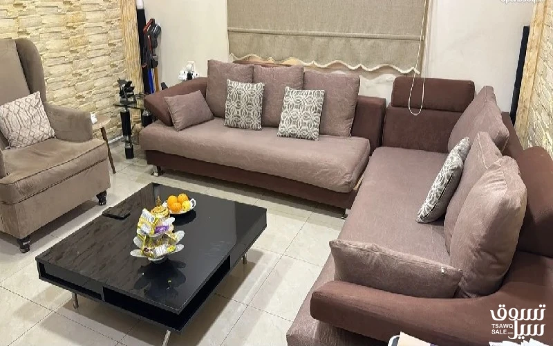 غرفة جلوس ( طقم كنب ) مع طاولة مستعمله ب 30