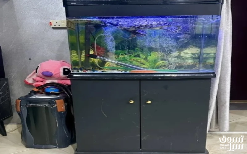 للبيع حوض سمك متوسط مع طاوله بها خزانه تحته مع كامل اغراضه مع فلتر كبير طول 60 سم ارتفاع 45 سم عرض 30 سم السعر 50 دينار للتواصل هاتف