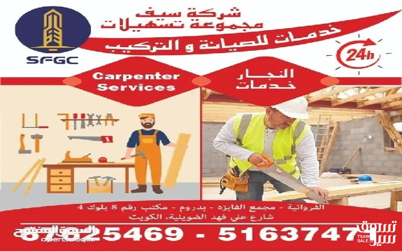 خدمات صيانة وتركيب النجارة، المجمعات السكنية والتجارية، مراكز التسوق، الصناعات
