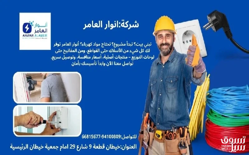 خصومات تصل إلى 50% على الإضاءة، الأفياش، الأسلاك وأكثر في شركة أنوار العامر . #كهرباء #صحي #مواد_بناء