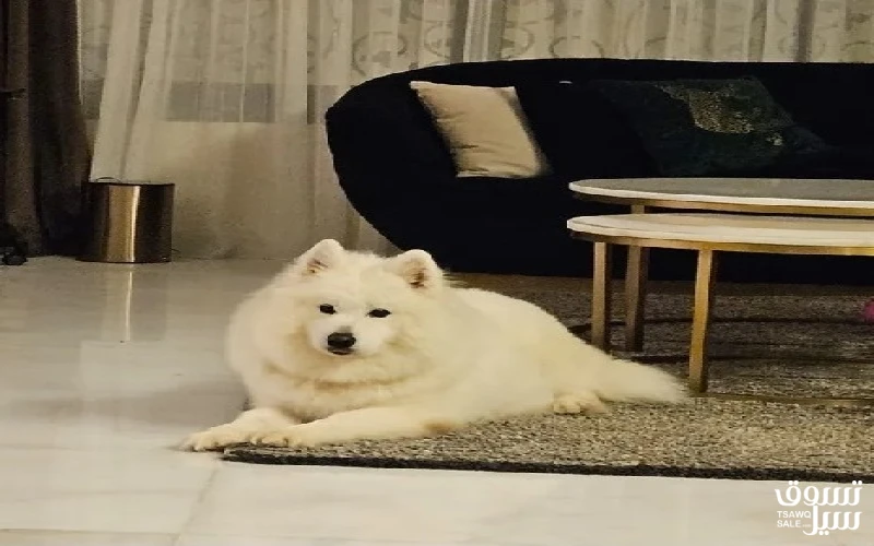 كلب هاسكي أبيض حجم ضخم أهالي وارد الخارج عظم عريض مطعم جميع التطعيمات عمر شهرين