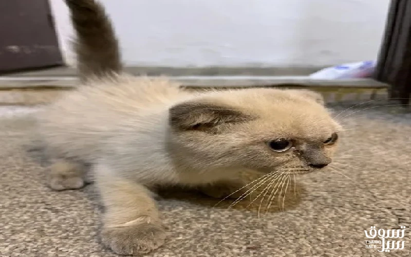 النوع هجين سيامي (Siamese Mix) العمر: تقريبا 5 أسابيع الوصف: قط صغير جميل بلون كريمي فاتح ووجه غامق عيونه زرقاء لامعة، هادئ ولطيف جدا ويحب الشرب واللعب. مناسب للتربية في البيت