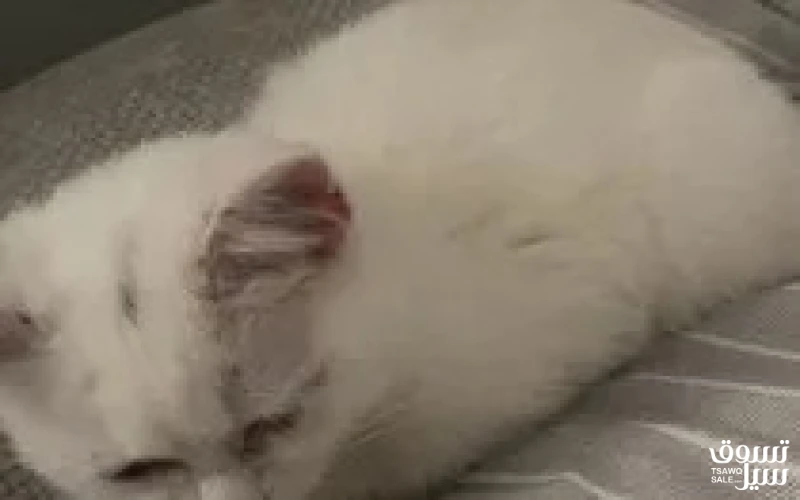 الوصف قطة لونها ابيض عمرها 3 شهور