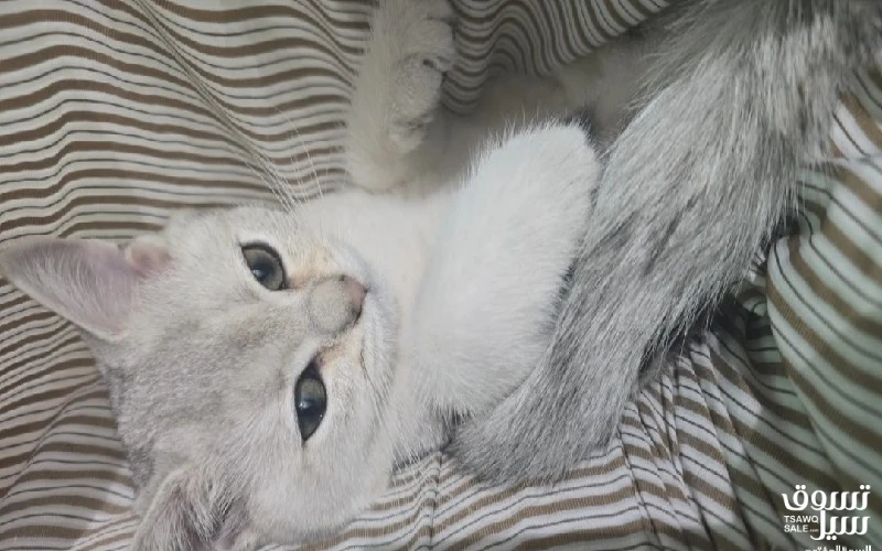 قطه 3 اشهر معاها دفتر التطعيم انتاج منزلي مع ليتر بوكس 40دينار ومو للتبني برتش شورت هير بيور لا يوجد توصيل او بكس للقطه