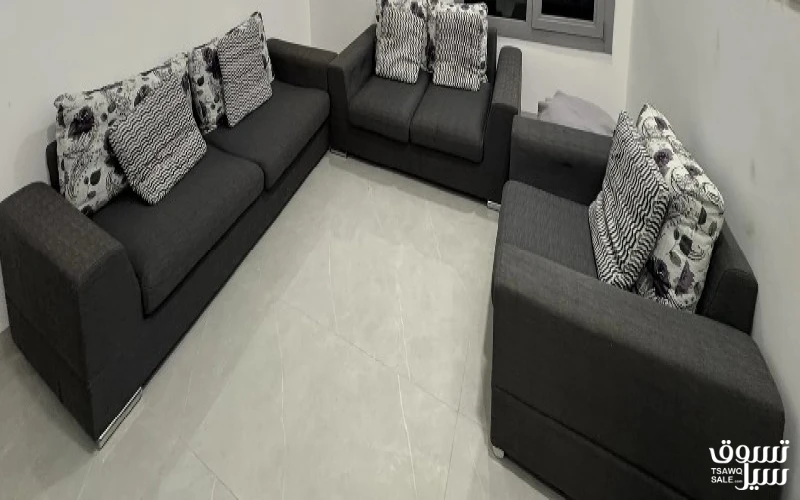 6 seats living room excellent condition (3 seats sofa + 2 seats sofa + 1 seat couch) غرفة جلوس صفاة هوم كاملة (3 مقعد + 2 مقعد + 1 مقعد) بحالة ممتازة Sh