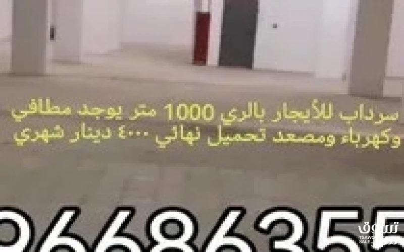 للإيجار مخزن 1000 متر سرداب بالري ارتفاع 5 متر يوجد مطافي وكهرباء For rent a warehouse 1000 meters
