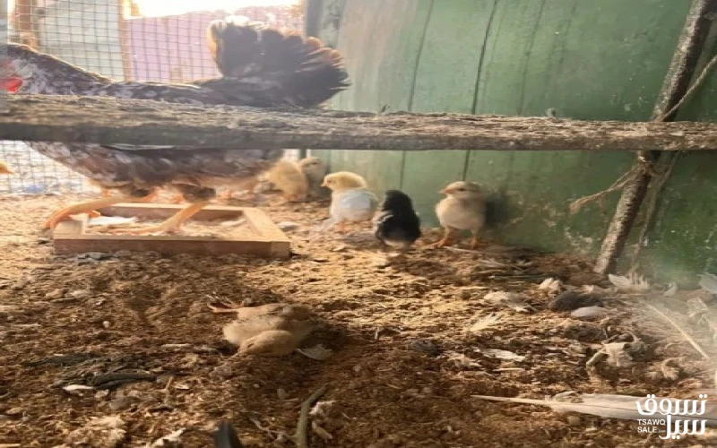 للبيع دجاج عربي مع الفروخ تفريخ طبيعي وليس فقاسات