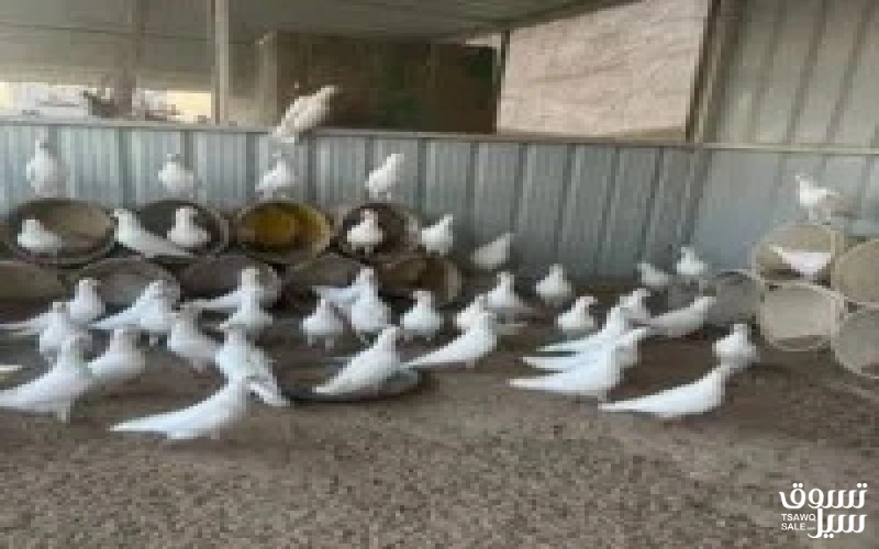 للبيع حمام لاحم وزاجل ابيض ازواج ومنتجين جبرة كاملة العدد 80 البيع جملة الطير على 1 وحط رقم تلفونك