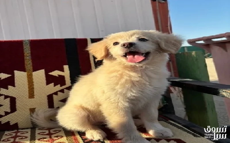 جولدن ريتريفر ميكس سبيتز عمر ثلاث اشهر متطعمة اول تلات تطعيمات ومعها دفتر تطعيمها متعلمة عالبي باد ولعوبة جدا وذكية مع بيتها وكل اغراضها