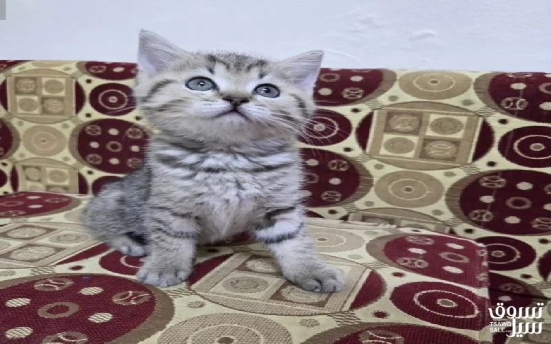 للبيع كيتن سكوتش شورت هير أطراف مكحلة ، صور الأم والأب موجودين ، ذكر عمره شهرين تقريبا متطعم _يوم 31 مايو_ ومسوين له قرومنج بعد ، متعلم عاللتر بوكس ومفطوم له أكثر من 3 أسابيع ياكل دراي فود ،وت فود ، صدور دجاج مسلوقة ، يجي معه دفتر التطعيم ، وبوكس تنقل ماركة غالية بقيمة 12 دينار ورمل قطاوة أحسن نوع وأكل دراي للكيتن وأكل معلبات مفروم خاص للكيتن ولتر بوكس مع مغرفة ولعبة للقطو وصحون جديدة ،
