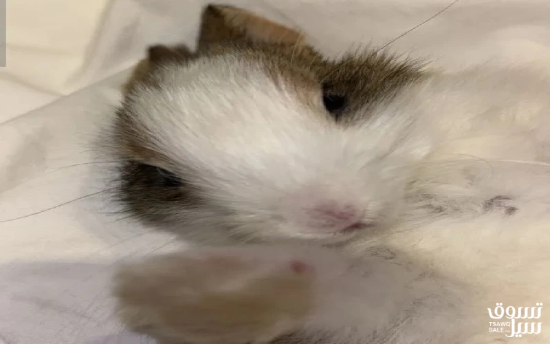 ارنب لعوب عمره ثلاث شهور لعوببب بشكل كبير معاه قفص ولبس واكله يكفيه شهر ونص ومعاه عشب مربع يقعد عليه الارنب يحب الحركه وشكراً