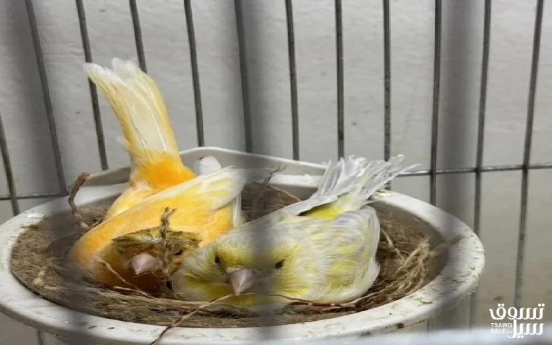 للبيع زوج كناري صحته ممتازه جاهز وقريب تبيض الذكر جزري حار والنثية موزييك البيع مع القفص و الأكل والعش السعر 25 دك + زوج طيور حب جاهزين السعر 10 دك