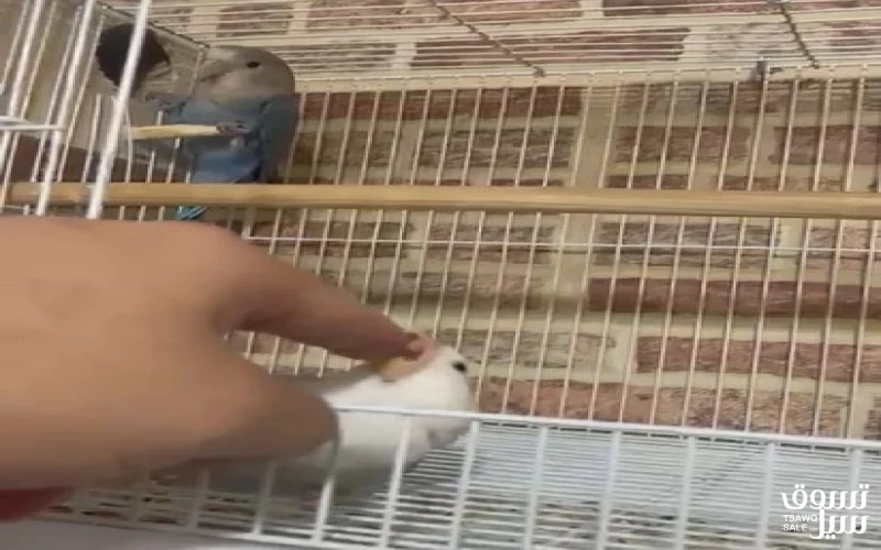 للبيع زوج لاف بيرد ربوه الابيض ربوه كامل و الازرقدفي خوف اشوي بس لمن يتعود عليك اصير ربوه