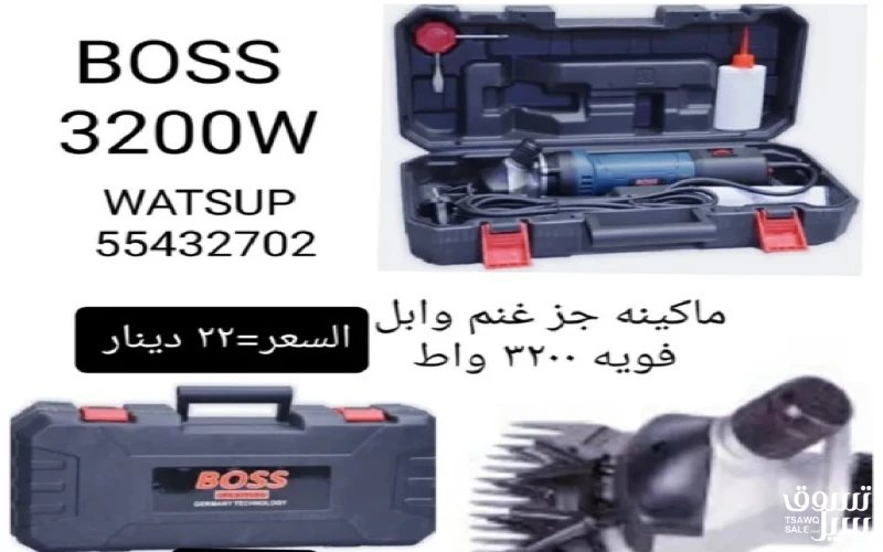 جميعا جديده بالكرتون : 1 / ماكينه كهربائيه لجز الغنم والابل قويه عده سرعات وعده درجات حلاقه = 28 دينار نهاءي 2 / ماكينه كهرباء قويه لجز الغنم والابل عده سرعات ودرجات حلاقه بواير طويل ="23 دينار نهاءي 3 / ماكينه كهرباء قويه لجز الغنم والابل قويه 3200W سرعات ودرجات ماركه BOSS الاصليه = 22 دينار نهاءي تكلفه التوصيل حسب 6المنطقة للتواصل وتس اب :
