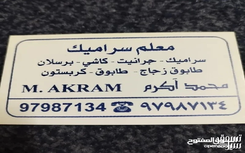 الوصف معلم ؤ مقاول سراميك باكستاني ، تكسير ؤ تركيب ، حمامات ؤ مطبخ ؤصالة ، جرانيت ؤ رخام ، فوق الكاشي ، اى شغلات سراميك ، شغل خصوصي ، جميع أعمال سراميك.