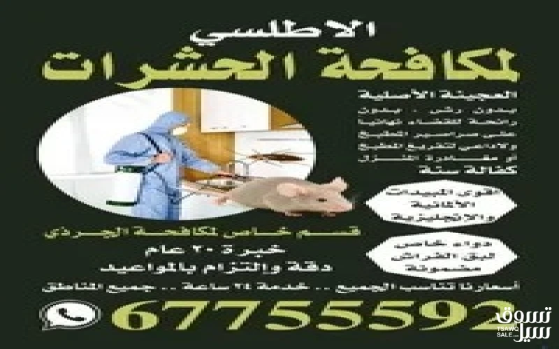 مكافحة حشرات وقوارض شركة الاطلسي جميع مناطق الكويت خدمة 24ساعه رش بدون رئحه مع كفاله سنه
