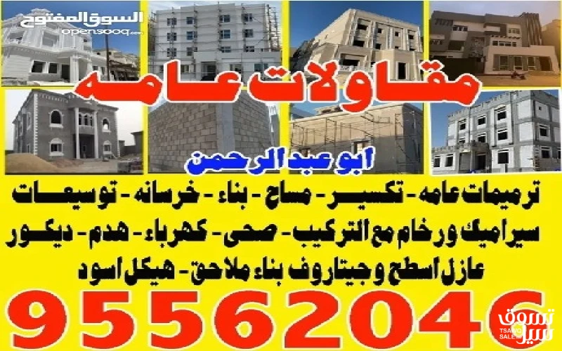 الوصف ترميمات عامه تكسير مساح بناء خرسانه توسيعات سيراميك ورخام مع التركيب صحى كهرباء هدم ديكور عازل اسطح بناء ملاحق هيكل اسود