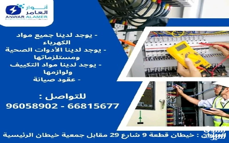 من الفكرة إلى التنفيذ... أنوار العامر شريكك في النجاح #كهرباء #صحي #مواد_بناء تواصل معنا 94100809 66815677 العنوان : خيطان قطعة 9 شارع 29 مقابل جمعية خيطان الرئيسية. https://khalejianews.com/posts/9171