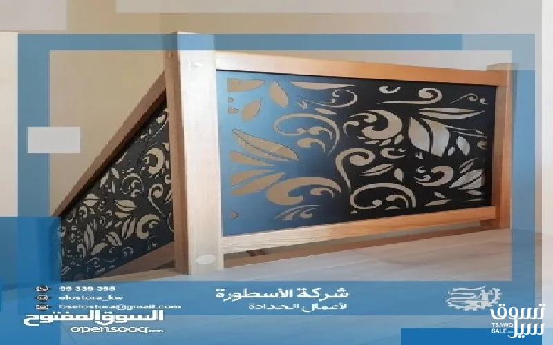 عمل ابواب حديد - درابزين - اسوار خارجية - مظلات قص فايبر CNC طعج جميع المعادن - برجلا - سلالم داخلي وسلالم خارجي - عمل قواعد طاولات حديد - كراسي وجميع اعمال الحدادة - دكورات داخلية - وخارجية. وغرف كيربي عمل اثاث حديد علي حسب التصميم