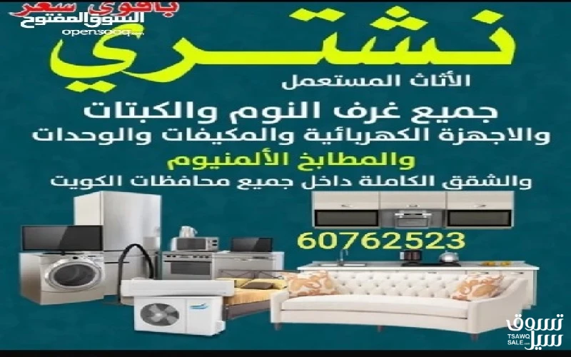 نشتري الاثاث الجديد والمستعمل وغرف النوم والمكاتب والاجهزة الكهربائيه والمكيفات والمطابخ والسكراب افضل الاسعار وخدمة على مدار اليوم