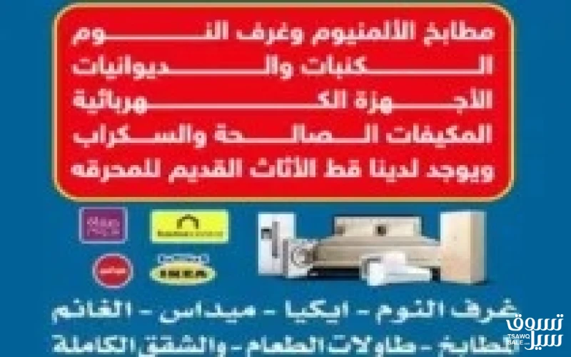 نشتري الأثاث المستعمل والشقق الكاملة مطابخ الألمنيوم والكنبات والديوانيات والأجهزة الكهربائية والمكيفات شغال أو سكراب ويوجد لدينا خدمة قط الأثاث القديم للمحرقة