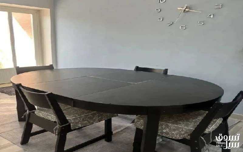 black/brown oval dining table with 4 chairs 166cm x 115cm after extending Without 115cm x 115cm Table is extendable chairs have cushions Best in condition and well maintained