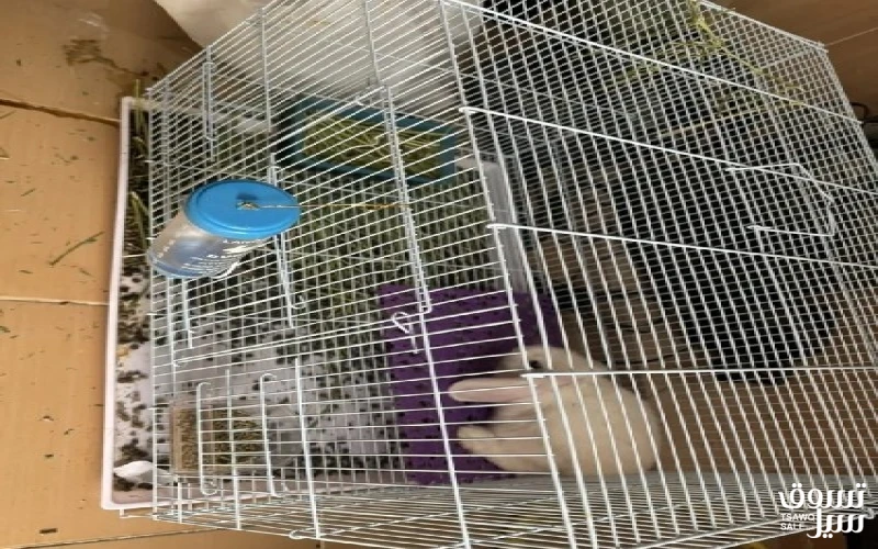 ارنب مع قفص وصحنين مطارة الماي والرنب ياكل فقط القش والحبوب وبدون خمس ولا جزر وينحط بمكان بارد مو حار على السوم دش وحط سومتك الرقم إضغط ليظهر الرقم.. 909336XXفقط واتس اب ش