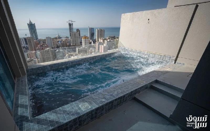 شقة للايجار غرفتين بمجمع مدينتي كمباوند متكامل أمن وكاميرات مراقبة وحمامات سباحة . منطقة ترفيه لاطفال مكان مميز اطلالة بحرية بشارع حمد المبارك