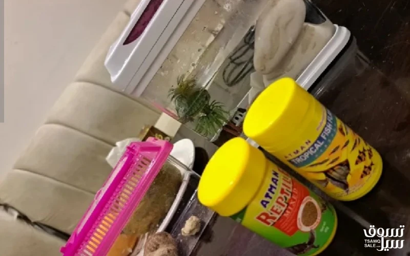 سلحفاة برمائية صغيرة + حوض بوكس مع اكسسوارات + فلتر + اضائة + حوض صغير للتنزه +علبتين طعام بسعر مغري
