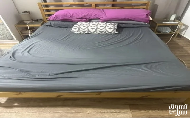 سرير خشبي حجم 140x200 متوسط الحالة مع اثنين كومودينو خشبي ومرتبة السعر 25 دك Wooden bed size 140x200 normal condition with two wooden side tables and mattress price 25 KD