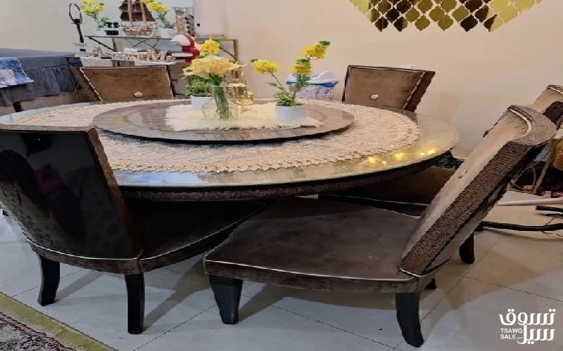 طاولة طعام دائريه .. طبقتين .. مع 6 كراسي مخمل. واتس اب Click to show phone number.. 941339XX