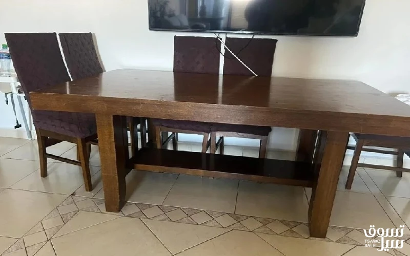 سفرة مع 6 كراسي خشب، سبب البيع عدم الحاجة لوجود سفرة اخرى. ملحوظة 2 كرسي يحتاج تثبيت الرجل.
