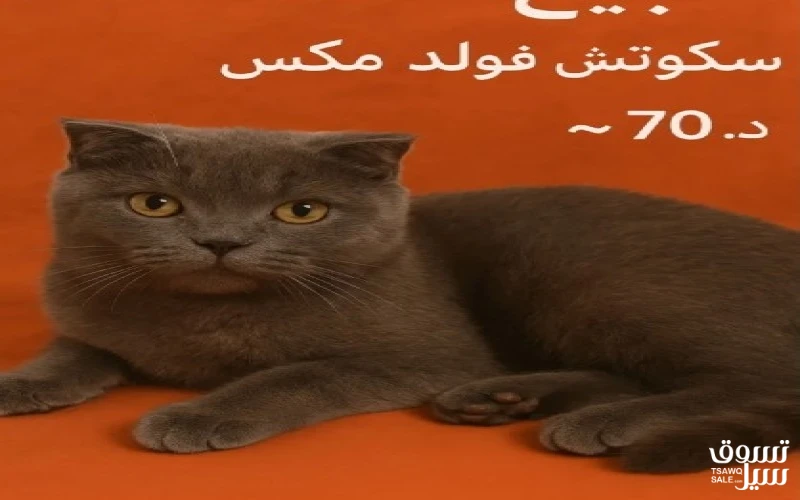 السلام عليكم، قطة سكوتش فولد Scottish Fold (أذن مطوية) - العمر: [7شهور] - اللون: رمادي فحمي جميل - الشخصية: هادئة، أليفة، وتعاملها ممتاز جداً مع الناس - الوضع الصحي: صحية، نظيفة - السبب في البيع: [السفر] - الموقع: [الاندلس / الفروانية]