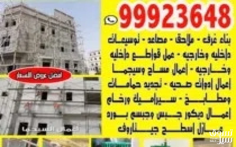 الوصف بناء غرف ملاحق مصاعد توسيعات داخليه وخارجيه عمل قواطع داخليه وخارجيه أعمال مساح وسيجما أعمال ادوات صحيه تجديد حمامات ومطابخ سيراميك ورخام أعمال ديكور جبس وجبسم بورد عازل اسطح جيتاروف