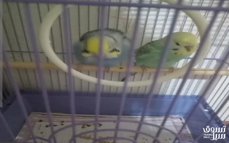 طيور بادجي للبيع ربوه مع القفص و اكل ب 15دينار