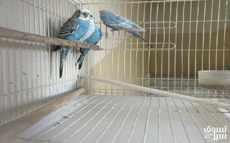 طيور الحب بادجي منتجه 8افراد مع 3 اقفاص الام والاب حنونين انتجوا 3 مرات
