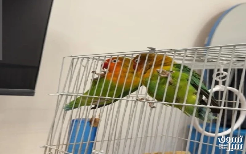 للبيع طيور فشر زوج جاهزين للانتاج ربوه مع القفص ب17 التواصل واتساب