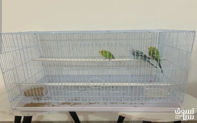 طيور ملونه مع القفص والاكل 12 دينار توصيل مناطق الجهراء فقط