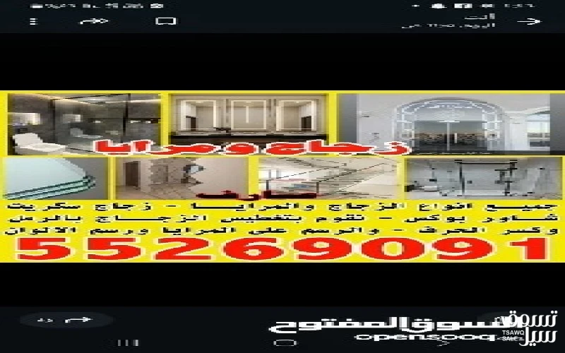 جميع انواع الزجاج والمرايا زجاج سكريت شاور بوكس نقون بتغطيس الزجاج بالرمل كسر حرف الرسم على المرايا ورسم الألوان