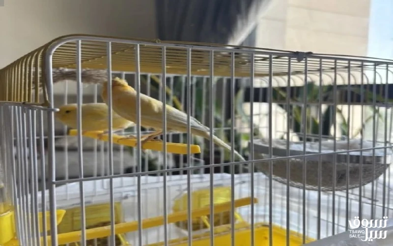 زوج كناري اصفر سوري الذكر ما شاء الله تغريد ممتاز والانثى حجم طيب الزوج جاهز عالبيض مع القفص والاغراض كاملة الذكر اصفر فاتح المطربش والانثى اصفر غامق