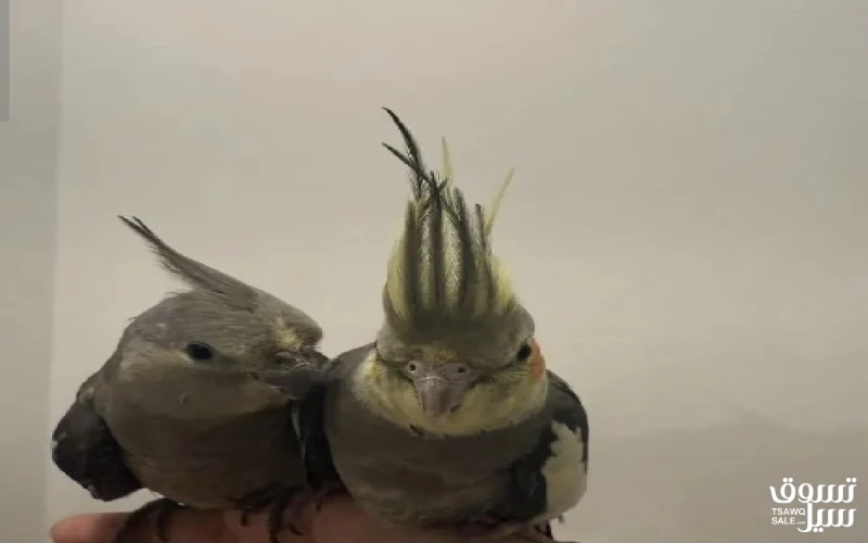 زوج كروان للبيع مع قفص و كاملة و مشربة و أكل