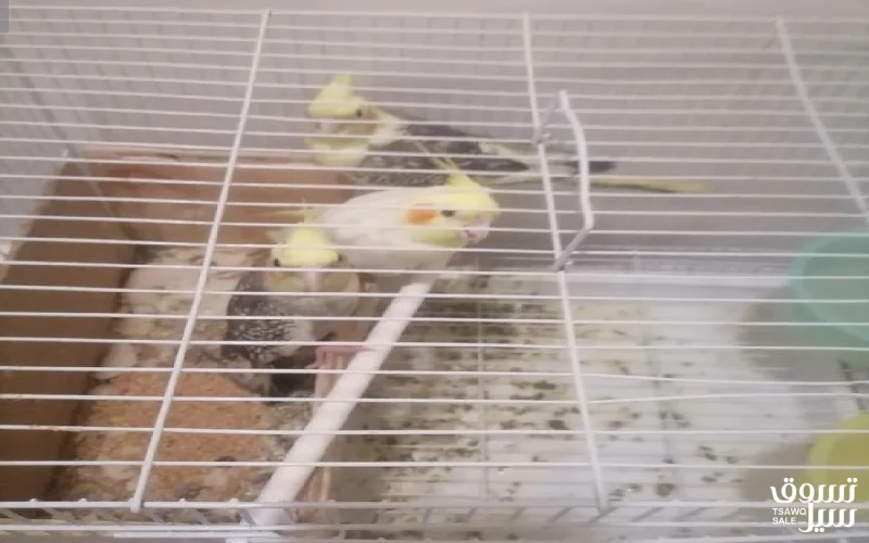 زوج طيور كوكتيل كروان مع القفص للبيع