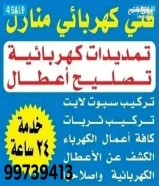 فني كهرباء منازل وصيانه اعطال تمديد وتركيب كل أعمال الكهرباء. تركيب معلقات وسبوت جميع مناطق الكويت99739413